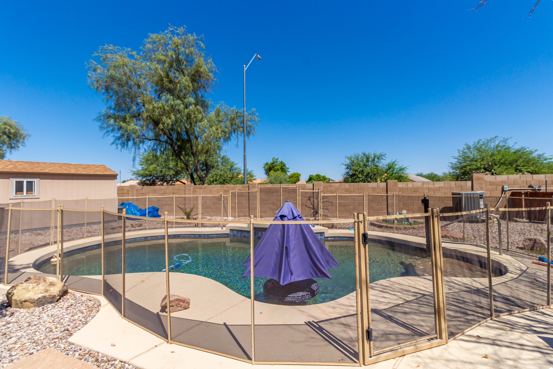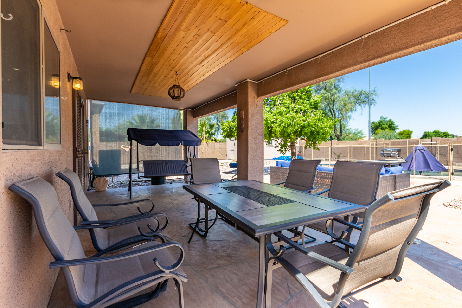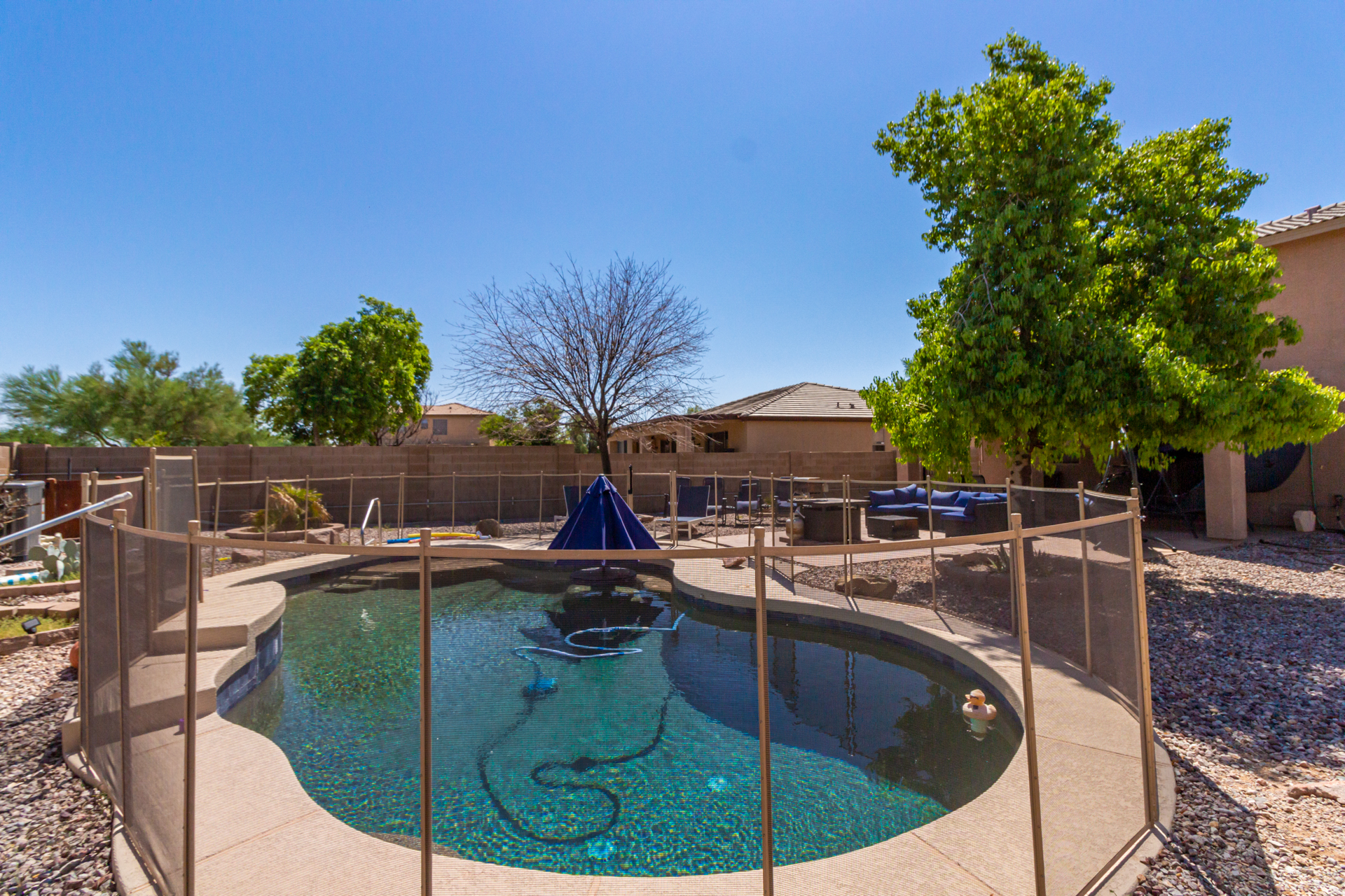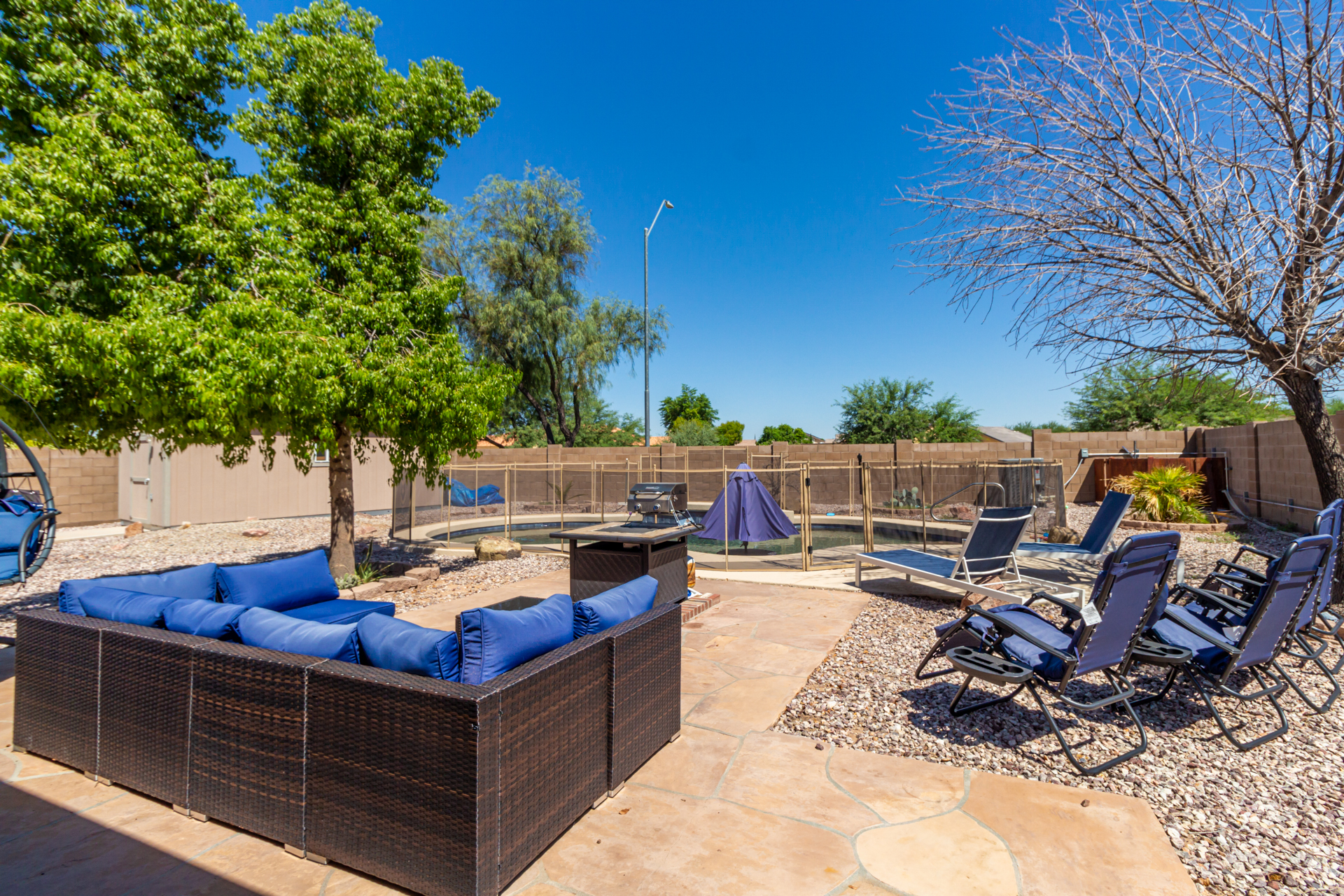 The backyard is fully private and gated